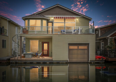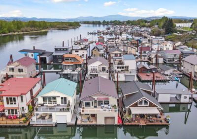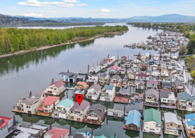 This floating home has been remodeled w/ the highest level of craftsmanship. The kitchen features custom wood cabinetry by Imperial Cabinets & Millwork. Designer two tone paint, whisper close on all doors & drawers, long brushed brass hardware & under cabinet lighting elevates the experience. GE Cafe appliances & range hood bring the space together in a luxury way w/ quality & reliability. The quartz countertops top it off w/ an elegant waterfall edge. Simply put you will never want to leave the kitchen. Unless of course you move from the kitchen to the balcony to dine or jump in your boat to explore the Columbia River or pop downstairs for a movie night. The primary bedroom is conveniently located on the upper floor. It is so large it can accommodate a California king size bed flanked by two dressers & a walk-in closet. The five piece primary bath is clad in sea grass limestone tile & features a luxurious soaking tub. The boat-well comes w/ the boat lift & can accommodate a 24ft. ski/wakeboard/surf/fishing boat. Washer & dryer are smart appliances & come w/ the home. Vaulted white washed wood ceilings, spacious balcony, covered deck, oak hardwoods, brand new carpet, giant bonus room w/ built-ins & wine fridge, designer lighting & finishes throughout, the features are too numerous to list. This is the ultimate floating home package. It includes slip ownership at Columbia Ridge Marina where owners can utilize BOTH sides of the dock, gated parking & auxiliary parking in the lot on the south side of the street (you can put a container there for additional storage). The homes location within the marina is exceptional w/ views to the Columbia River & the Island. It’s great location provides quick access to PDX Airport, bike paths & the Columbia River Gorge. Columbia Ridge Marina neighbors are friendly & enjoy progressive dinners, dock walks, corn hole tournaments, weekly happy hours, flotillas, & taco Tuesdays. Come live the river life you’ve always dreamed of.